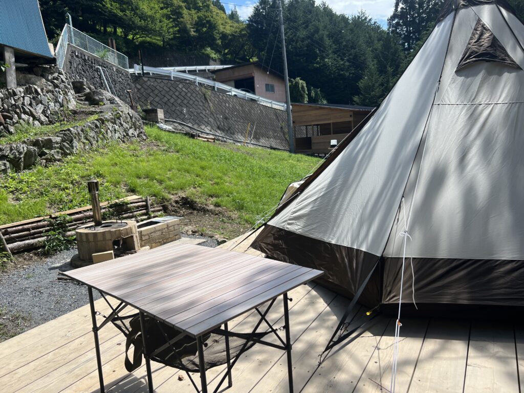 テント、寝具、テーブル、椅子、食器類、湯屋 月1回利用などが込みになります。